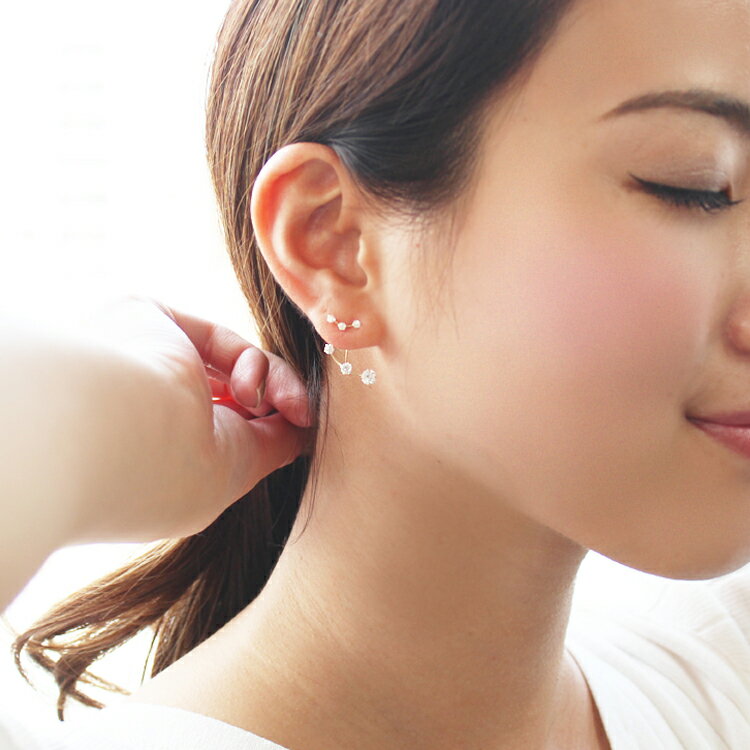 耳たぶに沿うようにデザインされたバックチャームが、存在感抜群!大人エレガントな輝きは、見るものの視線をくぎづけにすること間違いありません・・! 「アレンジ自在の万能ピアス」 その日の気分やスタイルに合わせてアレンジできるようなデザインでおつくりしたので、活躍の場は無限大・・! チャームも合わせてつければ、入学式や卒業式、パーティーで周りの視線を奪う鮮やかな輝きを放ちます。
