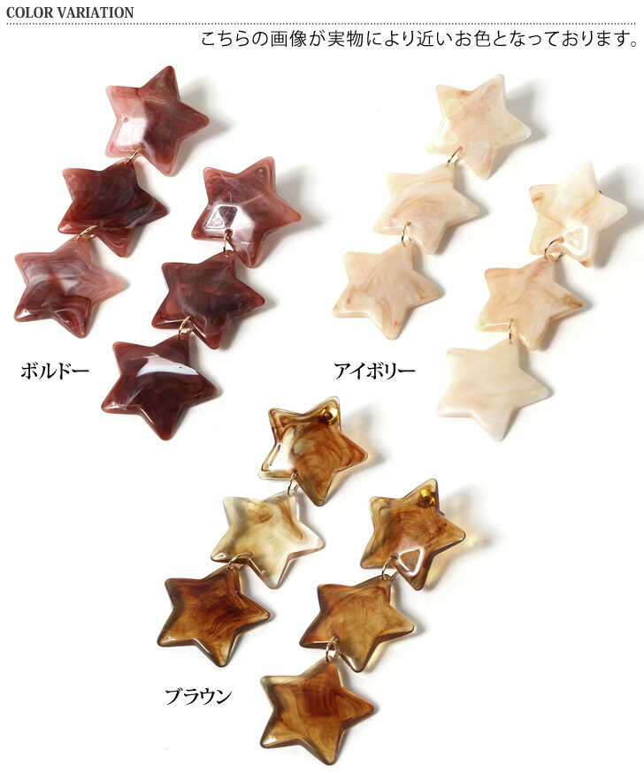 ●落ち着きのあるカラーリングとべっ甲モチーフが大人可愛いビッグスターデザインピアス ■サイズ:タテ約8cm×ヨコ約3cm ■生産:韓国製 ■注意事項: 肌の弱い方や、金属アレルギーをお持ちの方は、素材をご確認の上ご購入お願いいたします。