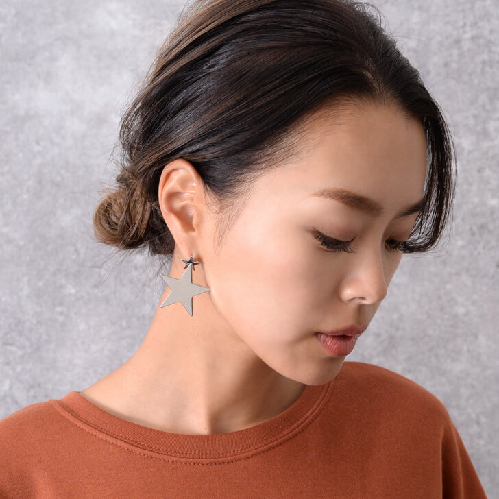 ●上品な輝きで耳元を華やかに彩るメタリックスターピアス ■サイズ:タテ3.8cm×ヨコ3.4cm ■生産:韓国製 ■注意事項:肌の弱い方や、金属アレルギーをお持ちの方は、素材をご確認の上ご購入お願いいたします。