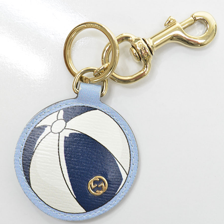グッチ GUCCI キーホルダー インターロッキングG ホワイトxネイビーxブルーxゴールド レザーx金属素材 キーリング チャーム レディース メンズ 【中古】【おすすめ】 - k9833a