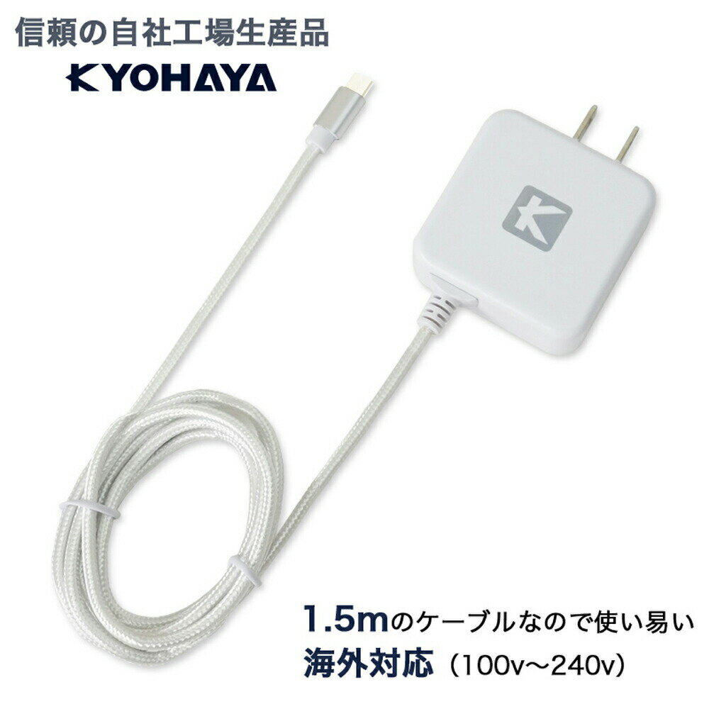 対応機種 USB Type-Cのコネクターを搭載した、スマートフォン・タブレット端末・Nintendo Swich等の機器 製品仕様 商品名 KYOHAYA USB Type-C急速充電器 2.0A ACアダプター 直接充電 スペック ○定格入力:AC100V-240V(50/60Hz) ○DC出力:DC5.0V 2.0A 商品サイズ 幅50×奥行20×高さ50mm(ケーブル除く) 商品重量 約70g ケーブル長 約1.5m カラー ホワイト/ブラック メーカー名 株式会社 京ハヤ
