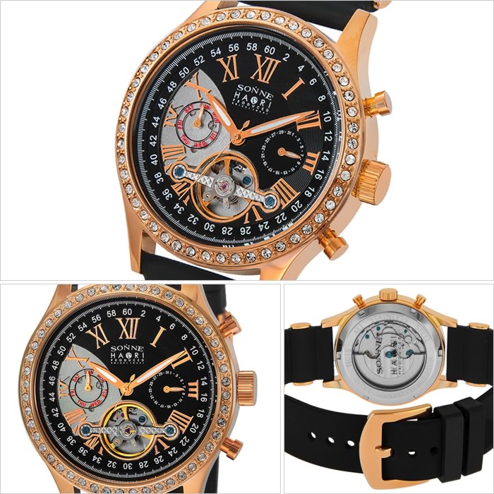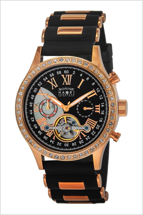 型番 H016PGZ-BK ケース材質:ステンレススティールサイズ約:径44mm×厚さ約:15mm重さ約:133gベルト材質:ラバーカラー:ブラックベルト腕周り最少:17cmベルト腕周り最大:22cmムーブメント機械式(自動巻)機能カレンダー機能(日・曜日表示)防水機能防水性:日常生活用防水付属品SONNE専用BOX保証書取扱説明書商品問い合わせ番号HSR-item-49600メーカー希望小売価格はメーカーサイトに基づいて掲載していますゾンネ[SONNE]ドイツ語で「太陽」を意味するゾンネ。