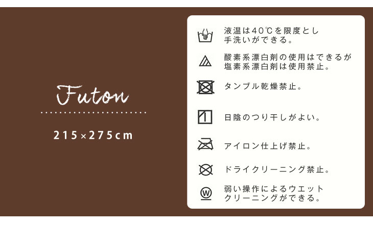 ※ご家庭での洗濯は避け、お手入れの際はクリーニング店にご相談ください。
