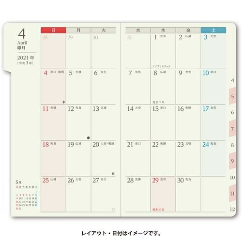カレンダー感覚で週ごとの予定が把握しやすいのが特長で、見たいページをパッと開けるインデックス付きです。