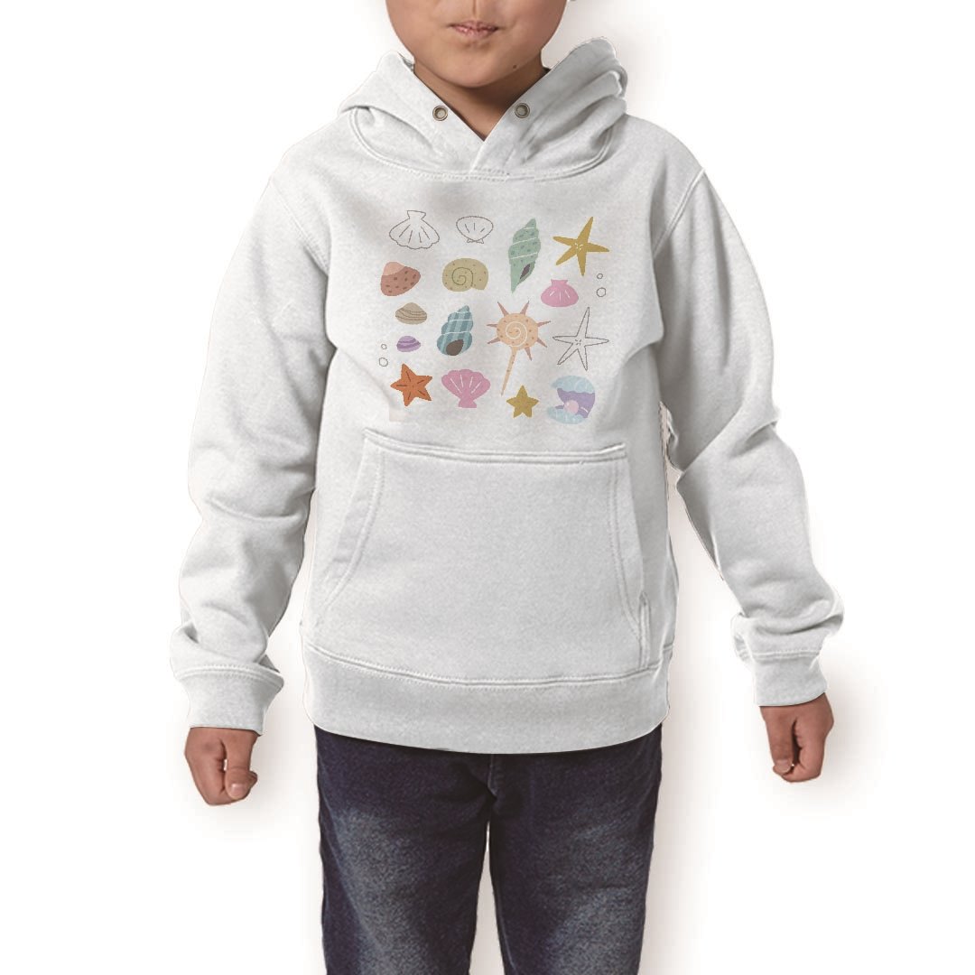 パーカー キッズ ホワイト グレー ブラック デザイン 110 130 150 parker hooded sweatshirt フーディ 白 黒 灰色 子供 男の子 女の子 009429 海 貝殻 カラフル