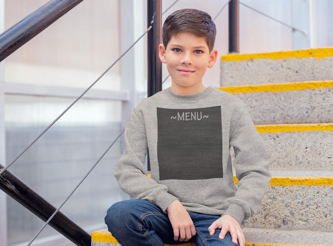 トレーナー キッズ 子供 長袖 ホワイト グレー ブラック デザイン 110 130 150 sweatshirt trainer 白 黒 灰色 裏パイル スウェット スエット 009363 黒板 メニュー 料理