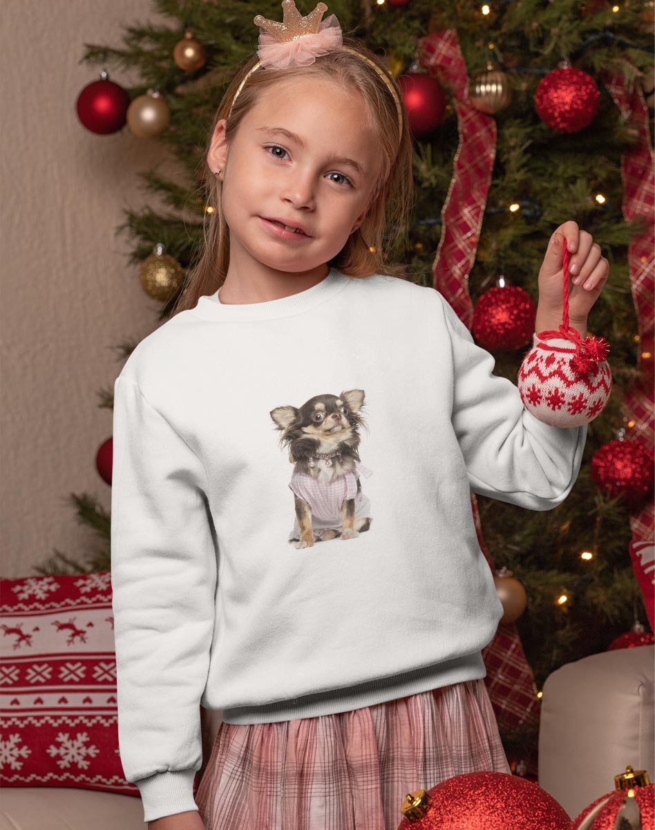 トレーナー キッズ 子供 長袖 ホワイト グレー ブラック デザイン 110 130 150 sweatshirt trainer 白 黒 灰色 裏パイル スウェット スエット 002884 犬 動物 写真