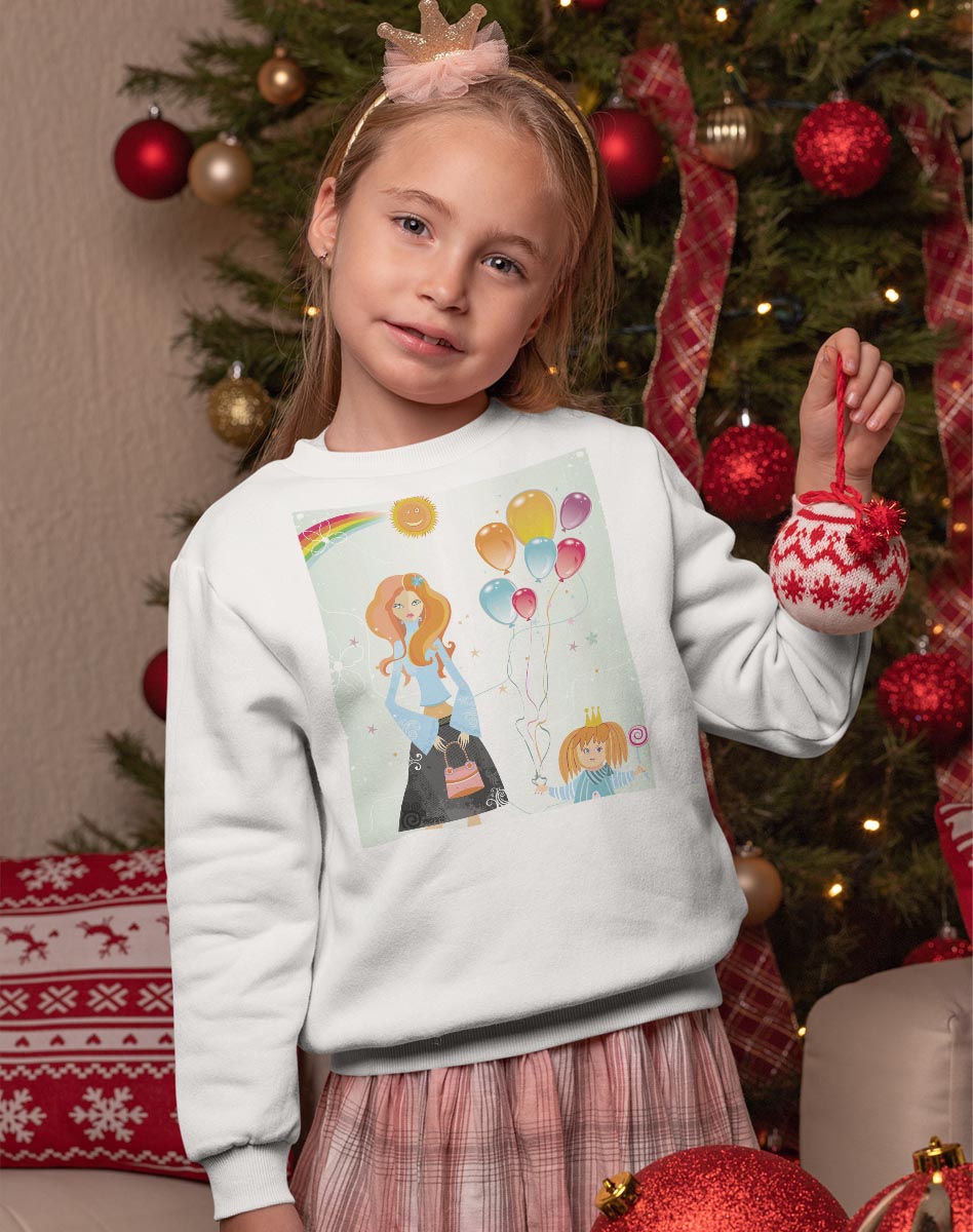 トレーナー キッズ 子供 長袖 ホワイト グレー ブラック デザイン 110 130 150 sweatshirt trainer 白 黒 灰色 裏パイル スウェット スエット 005582 人物 風船 イラスト